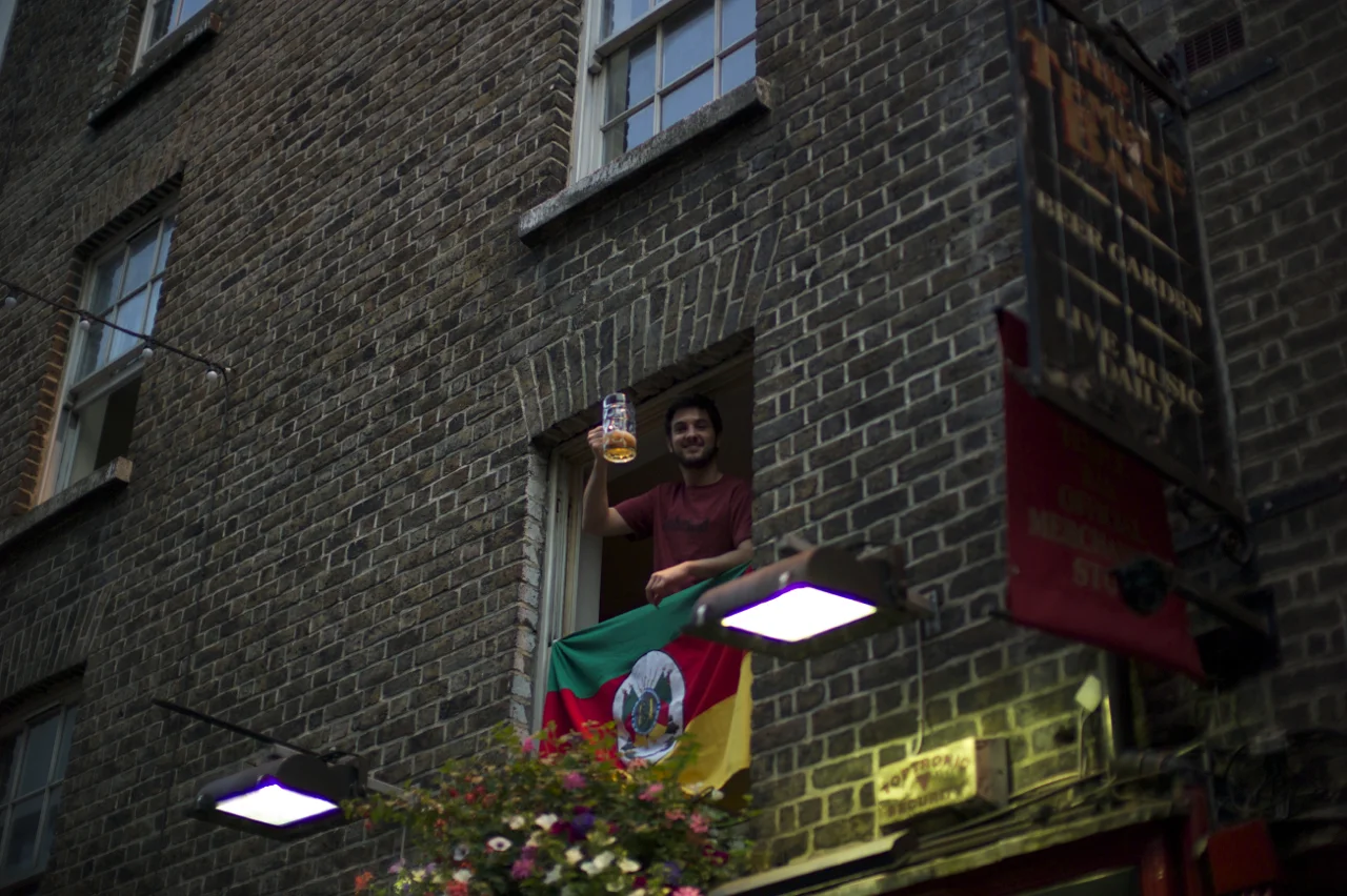 Ici le gars qui habite au dessus du pub est au courant que les gens font un tout petit peu de bruit dans la rue. Il semble même assez content de l'ambiance.