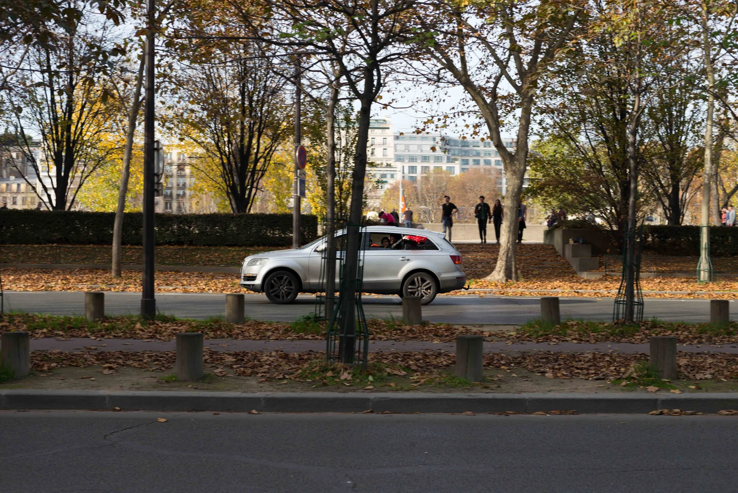 Un autre truc qui est bien c'est que le dimanche à Paris, on circule sacrément bien,. 1/2h après le départ on est garé au musée du quai Branly qui n'est pas conçu pour les voitures larges alors qu'il n'a que peu d'année.